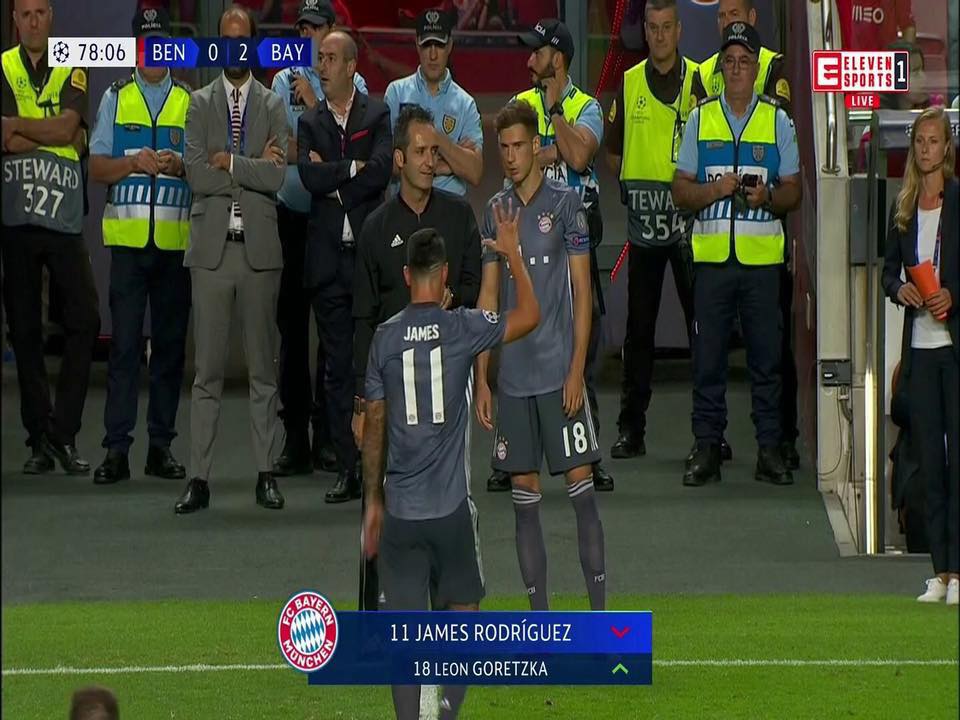 وتعرض اللاعب الكولومبي لصافرات الاستهجان من قِبل جماهير بنفيكا حيث أنه كان يلعب سابقاً في صفوف الغريم #بورتو ، وعند استبداله في الدقيقة 78، خرج رودريغيز وهو يلوح بيده بإشارة رقم 5.