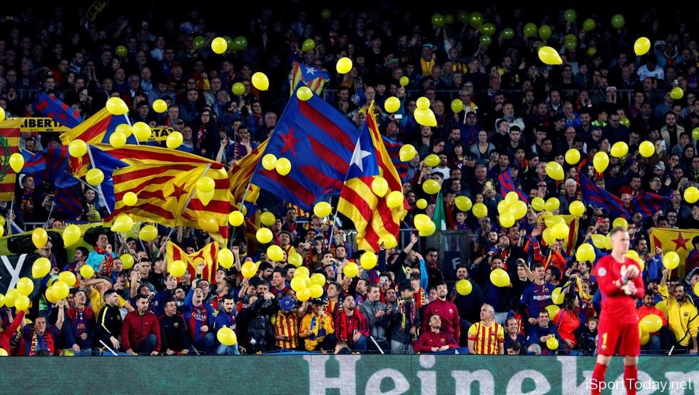 وقام الحكم الهولندي #داني_ماكيلي بإيقاف المباراة للحظات في الدقيقة 17 من زمن الشوط الأول ، بعدما قامت جماهير برشلونة بإلقاء بالونات صفراء من المدرجات ، دخل العديد منها إلى أرضية الملعب.