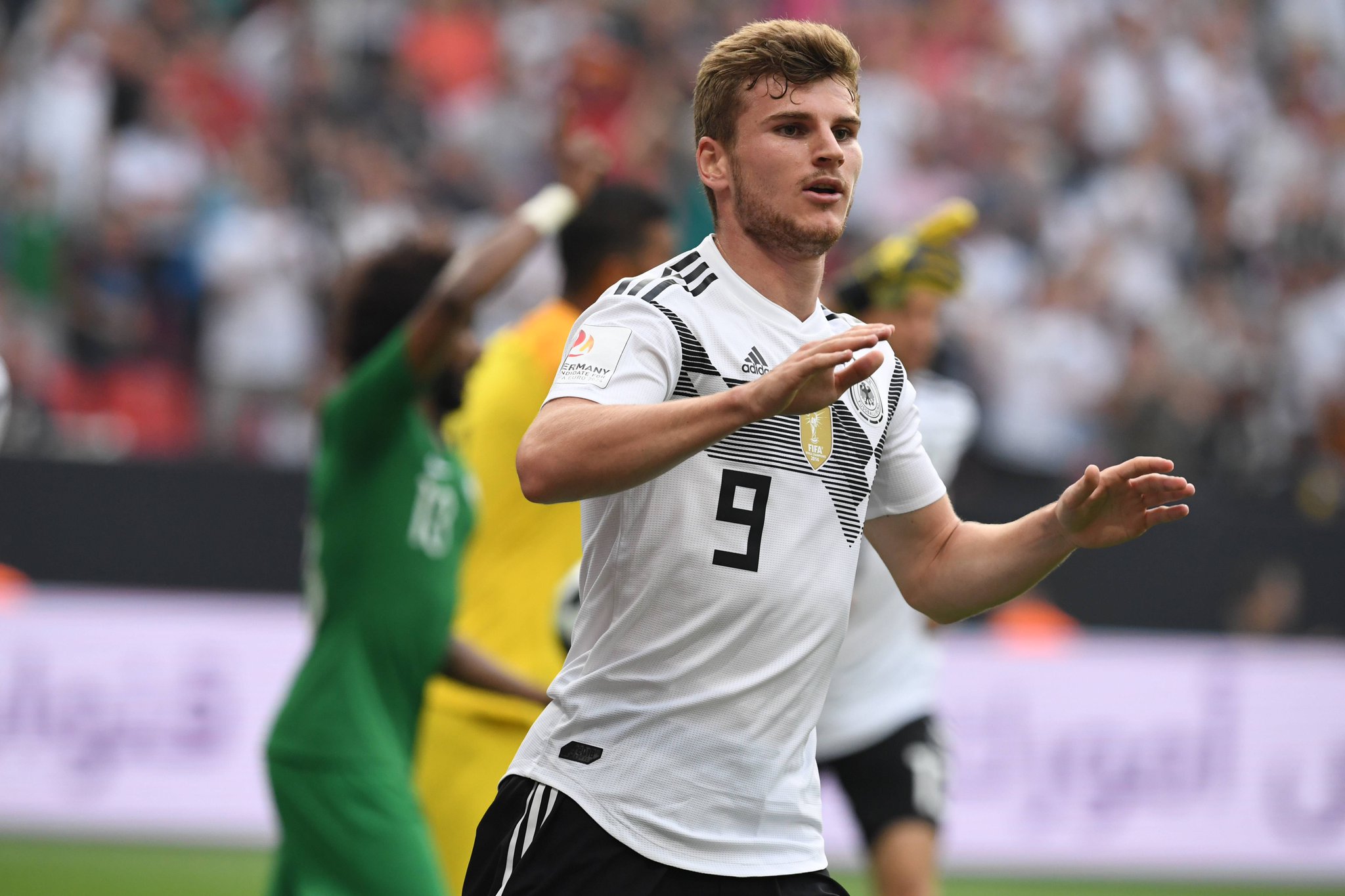 وافتتح #فيرنر التسجيل للماكينات الألمانية في الدقيقة 8 ، قبل أن يضيف عمر هوساوي الهدف الثاني بالخطأ في مرماه عند الدقيقة 43 ، فيما سجل تيسير الجاسم الهدف الوحيد للأخضر السعودي قبل 4 دقائق على نهاية المباراة.