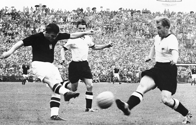 نُقلت أول نهائيات كأس العالم، مباشرة على التلفزيون في عام 1954، وتابع وقتها حوالي 90 مليون شخص مباريات البطولة باستخدام حوالي أربعة ملايين جهاز تلفاز بالأبيض والأسود، ما مكّنهم في نهاية الأمر من أن يكونوا شاهدين أيضا على "معجزة بيرن" الألمانية، عندما نجح الألمان، أمام 64.000 متفرج، غصت بهم مدرجات ملعب فانكدورف بمدينة بيرن، من الفوز بنتيجة 3-2 على المنتخب المجري الذي كان مرشحاً فوق العادة لتحقيق النصر.