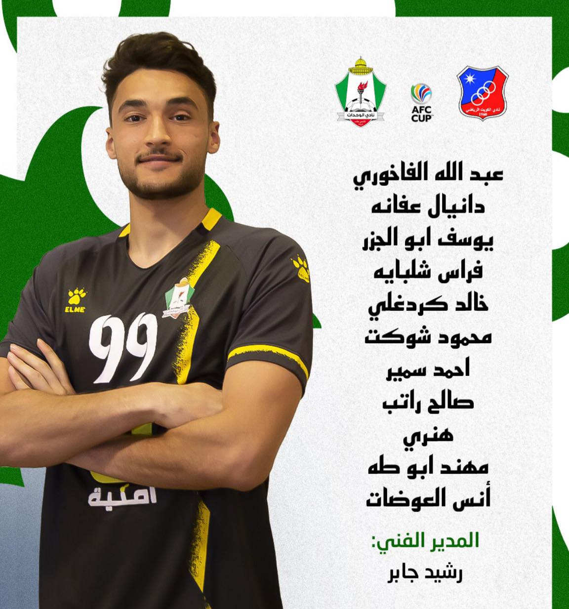 ملاعب - أعلن المدير الفني لفريق الوحدات رشيد جابر عن التشكيلة الرسمية التي ستواجه الكويت الكويتي ضمن الجولة الاخيرة من بطولة كأس الاتحاد الاسيوي.