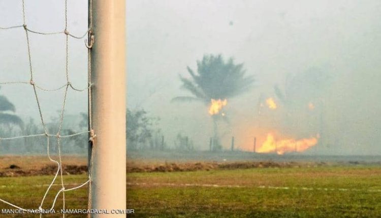 وغطى الدخان أجواء ملعب “أنطونيو أكينو لوبيز” في مقاطعة ريو برانكو شمال غربي البرازيل، أثناء مباراة أتليتيكو أكرينو ولوفردنس، بينما بدت الحرائق واضحة خلف الملعب، مما تسبب في إيقافها لبعض الوقت.
