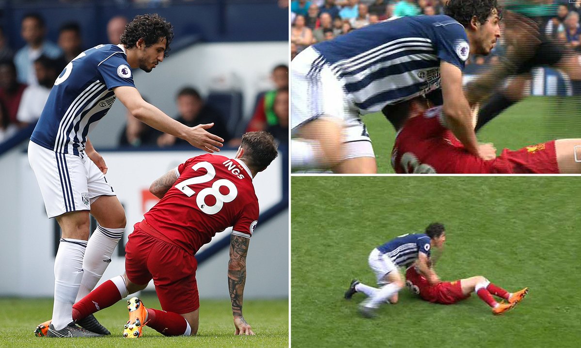 أكدت صحيفة الـ"صن" البريطانية السبت، أن مدافع فريق ويست بروميتش #ألبيون، أحمد #حجازي قد يتعرض لعقوبة الإيقاف، بسبب الاعتداء الواضح بحسب وصفها على مهاجم #ليفربول داني #إينغز، في اللقاء الذي جمع الفريقين السبت وانتهى بالتعادل الإيجابي 2-2 ضمن الجولة 35 من البريميرليغ.