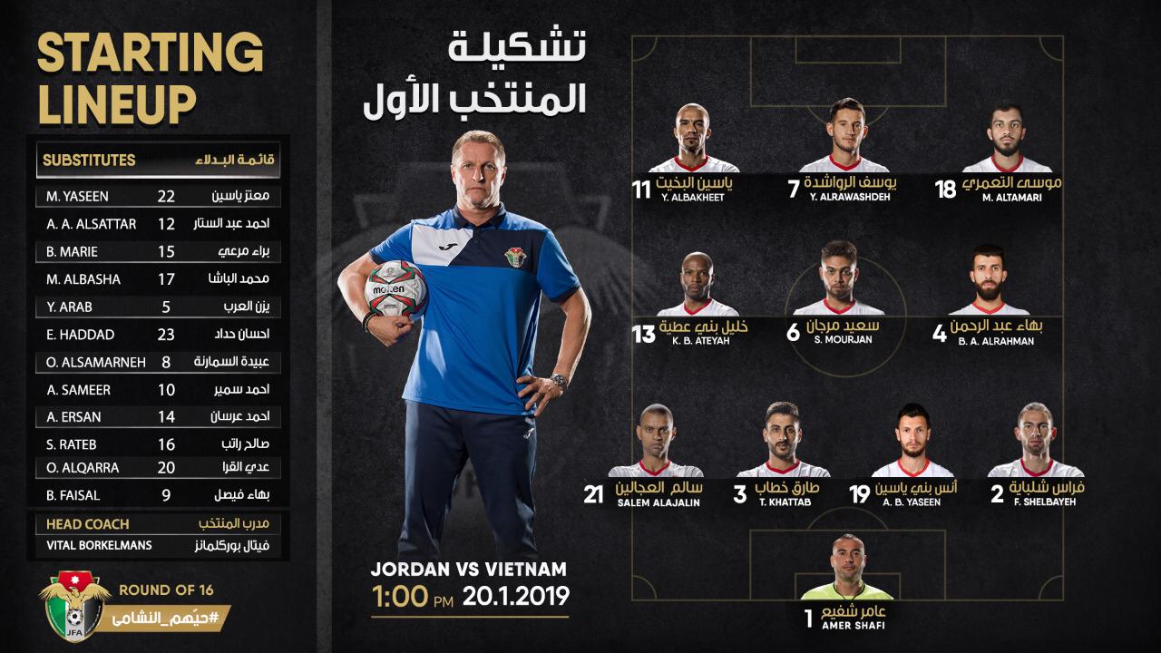 أعلن المدير الفني لمنتخبنا الوطني لكرة القدم، #فيتال برولكمانز التشكيلة الرسمية التي ستخوض غمار مواجهة دور الـ16 من كأس اسيا 2019 أمام #فيتنام عن الساعة الواحدة ظهراً بتوقيت عمان على ستاد ال مكتوم بنادي النصر في (دُبي).