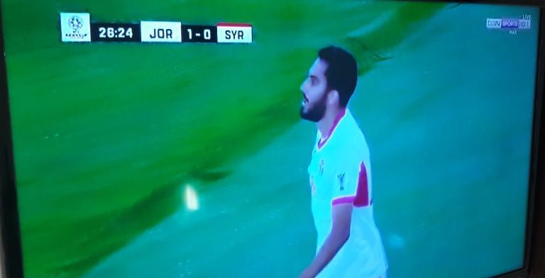 سجل #النشامى هدف التقدم في مرمى #سوريا عبر موسى #التعمري في الدقيقة 26 بعد أن أكمل كرة يوسف الرواشدة الصاروخية نحو مرمى إبراهيم عالمة حارس سوريا.