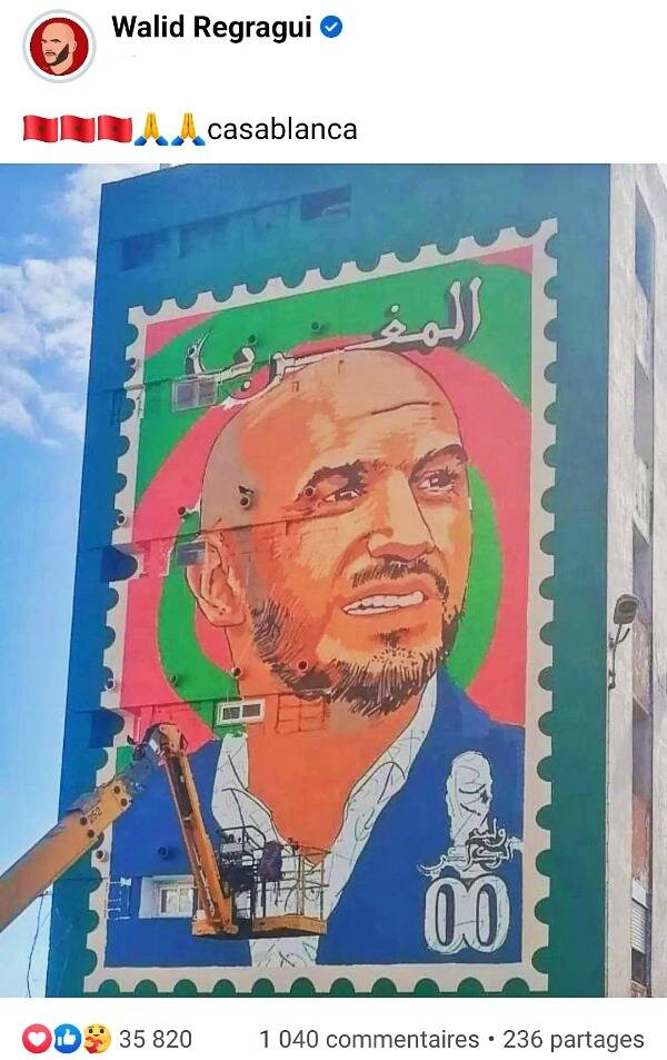 ملاعب - تفاعل وليد الركراكي، مدرب المنتخب، مع صورة عملاقة له جرى تصمينها على إحدى البنايات الشهيرة في مدينة الدار البيضاء العاصمة الاقتصادية للمغرب.