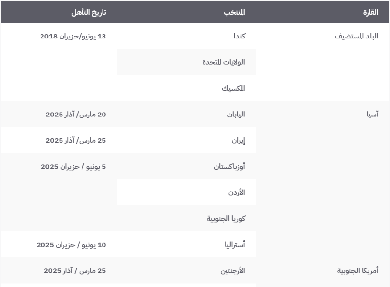 ما المنتخبات المتأهلة إلى كأس العالم 2026؟